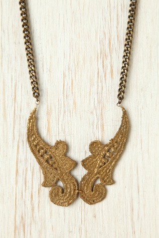 | Cut and spray paint a paisley doily and attach a chain with jump rings. photo |